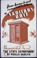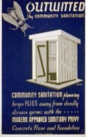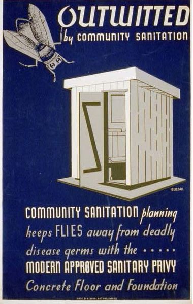 | Poster created for the WPA Federal Art Project, artist unknown, Chicago, Illinois, between 1936 and 1941. The poster shows an outhouse