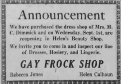 We have purchased the dress shop of Mrs. M. C. Dimmick