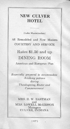 Below is an ad from the Culver Military Messenger of 1932-3:
