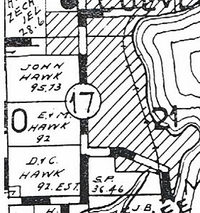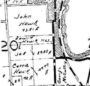 on the east until Oct 20, 1923 and filed Decmeber 22, 1923 when Edwin C. & Mary Hawk;