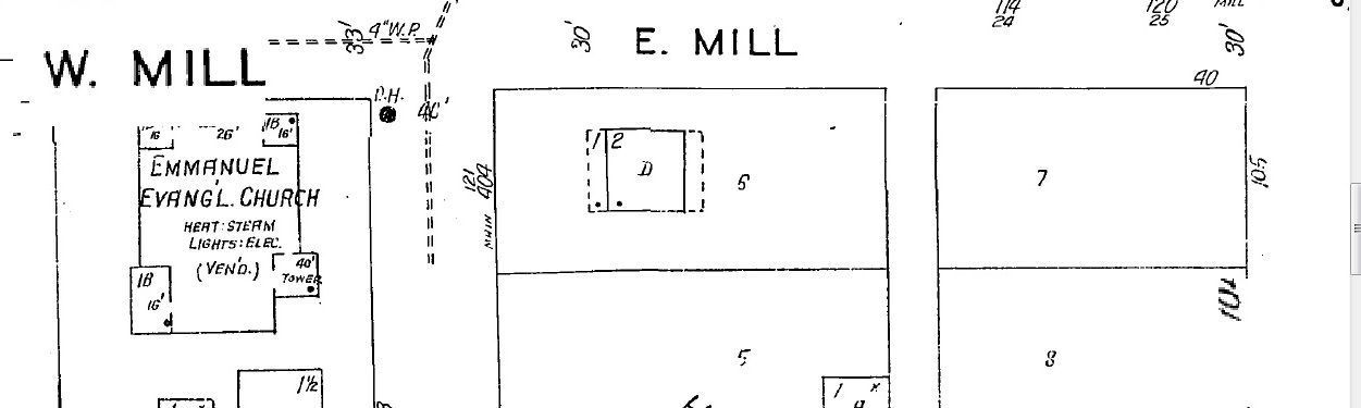 The 1908 plat map shows this area basically undeveloped. Mill street is simply