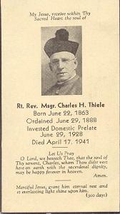 Funeral card - Rt. Rev. Msgr. Charles H. Thiele born June 22, 1863; ordained Jun 29, 1888; Invested Domestic Prelate