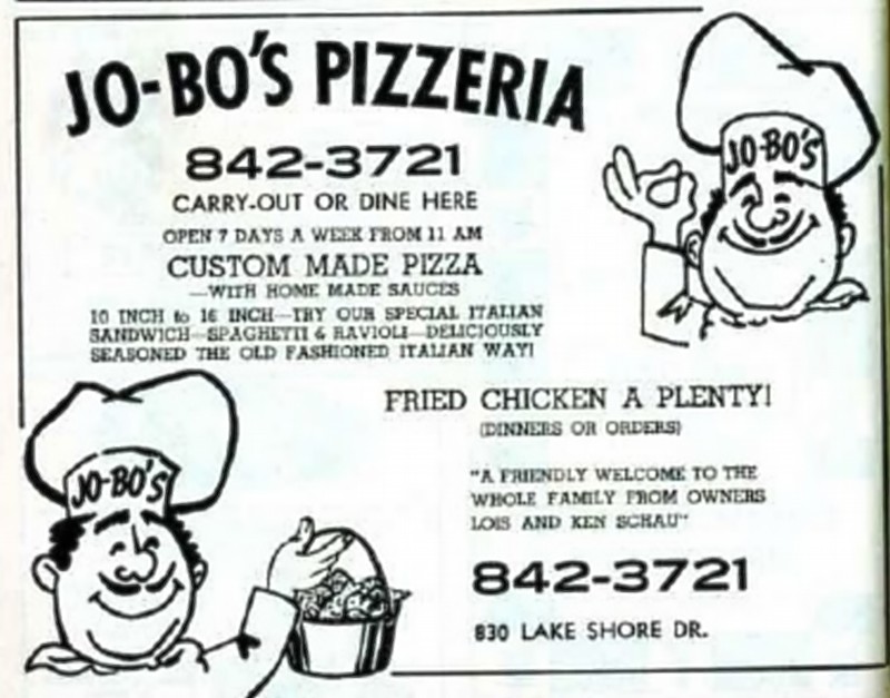1971-c1976 - Jo-Bo's Pizzeria [830 Lakeshore Dr.; the Motel next door carried the same address]