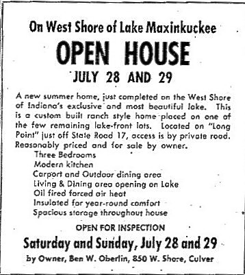 An ad that ran in the Culver citizen in 1956 announcing open house on July 28 and 29