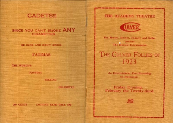 The Academy Theatre The Messrs. Mather, Fogerty and Keller present The Musical Exrravaganza The Culver Follies of 1923 An Entertainment Fast Becoming an Institution Friday Evening February the Twenty-Third