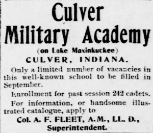 Col. Fleet, superintendent of the school at Culver, was largely instrumental in