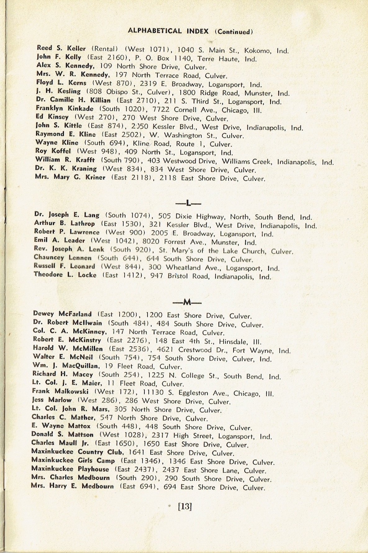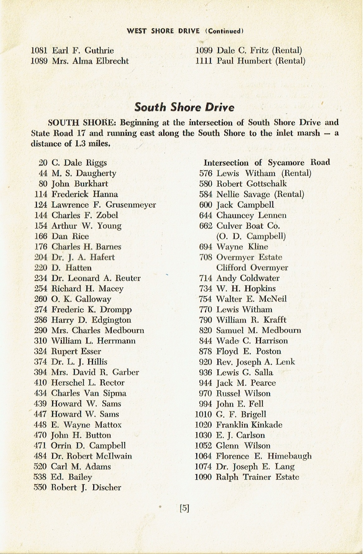 C. C. Wynn (East (257). 125-1 East Shore Drive, Culver.