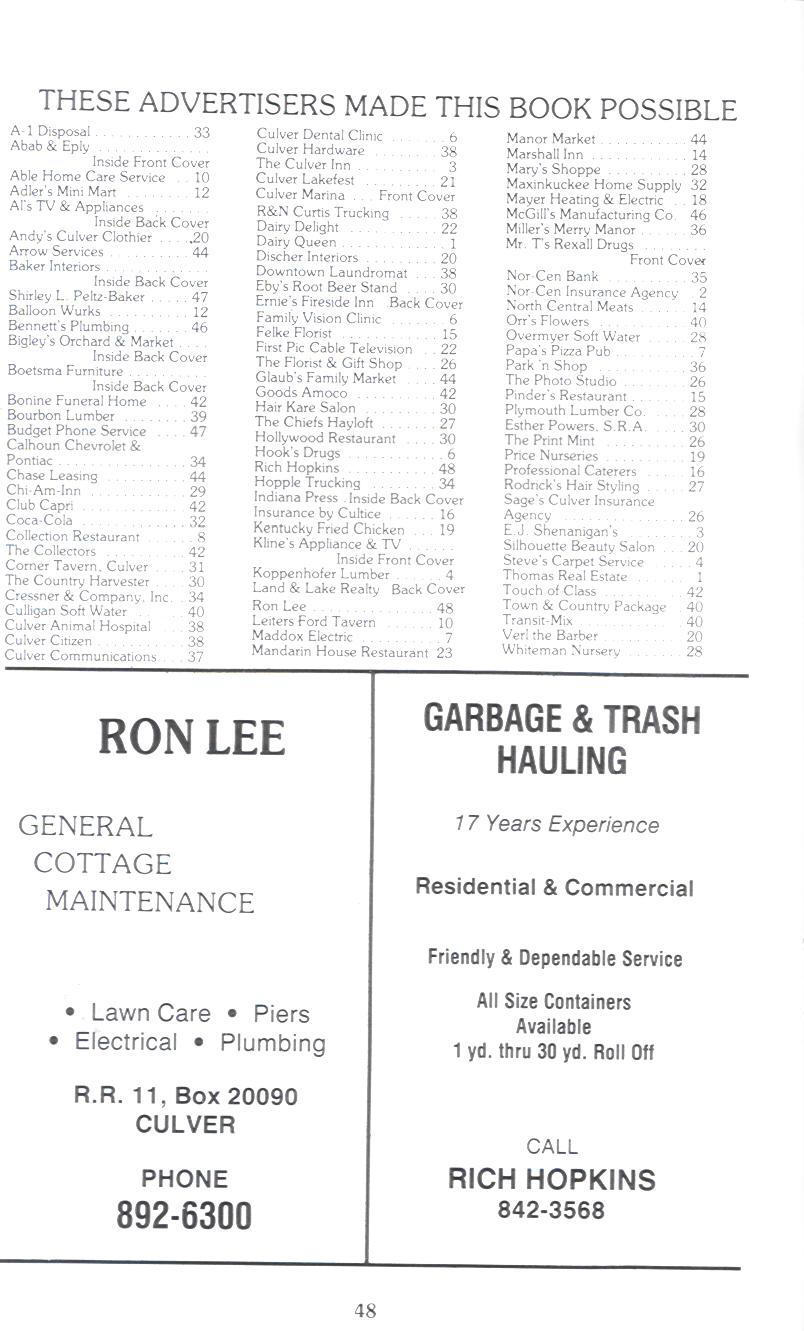 Lake Maxinkuckee Its Intrigue History & Genealogy Culver, Marshall, Indiana