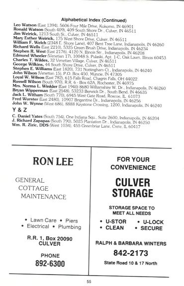 555555555555 Lake Directory 1993 - History and Genealogy of Lake Maxinkuckee