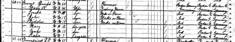 Joseph Busart b. Dec 1834 Baden Germany; died 26 Jan 1903 ,Marshall, Indiana St. Ann's cemetery.