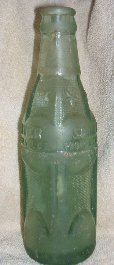 on the neck is 6 panels with a plaid design. and with a 5 point star in them star . The mididle contains four sunken panels with a plaid design. On soda side reads on each side of the