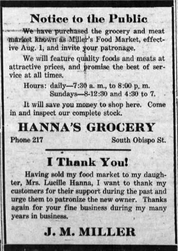 1942 - Aug. 6 --- J. M> Miller Sells Store to Daughter - J.M> Miller has sold his grocery and market