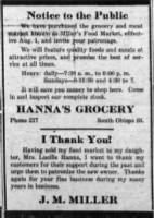 to his daughter, Mrs. Lucille Hanna, effective Aug. 1. The store will now be known as Hanna's Grocery.