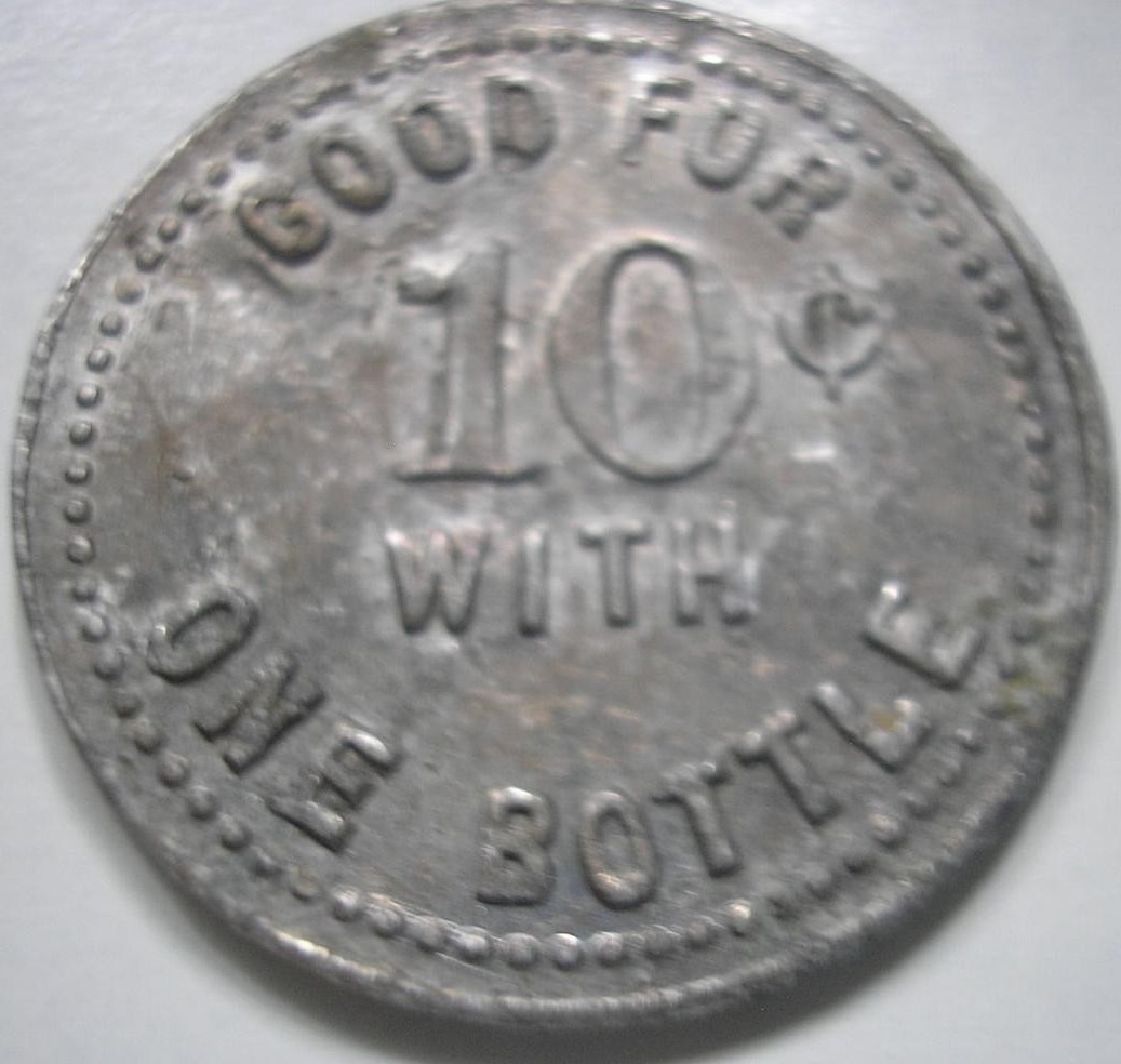 in the center on the other side it stamped"Good For 10 cents with one bottle |