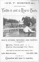 M. F. Mosher builder of Yachts and row boats. Boats stored, repaired and painted. Boats, tents, and
