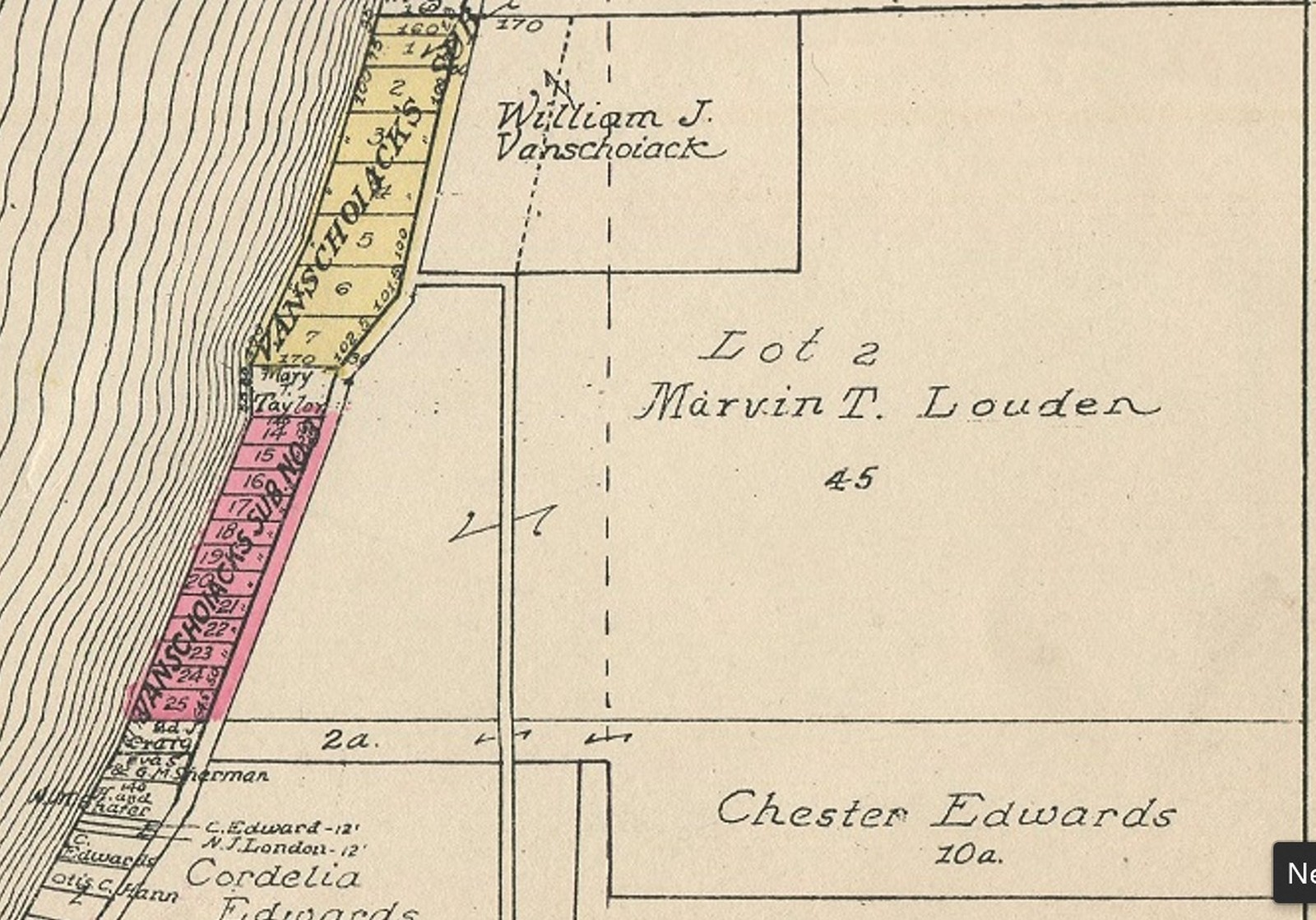 Lot 2 Lot 2 Lot 4 Lot 5 Lot 6 lot 7 Lot 8 Lot 9 Lot 10 Lot 11 Lot 12 1922- Wm. VanShoiack 1922 - B McQ [McQuat] 1922 - Easement to Lake? 1922 - VanShoiack Sub [division 2nd Add.] 1922 - Mary T Taylor possibly 2296 East Shore dr. |
