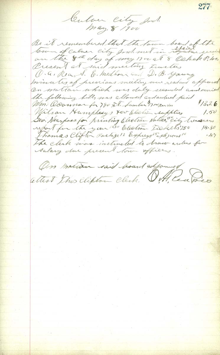 O. A. Rea Pres. Thomas Clifton Clerk |