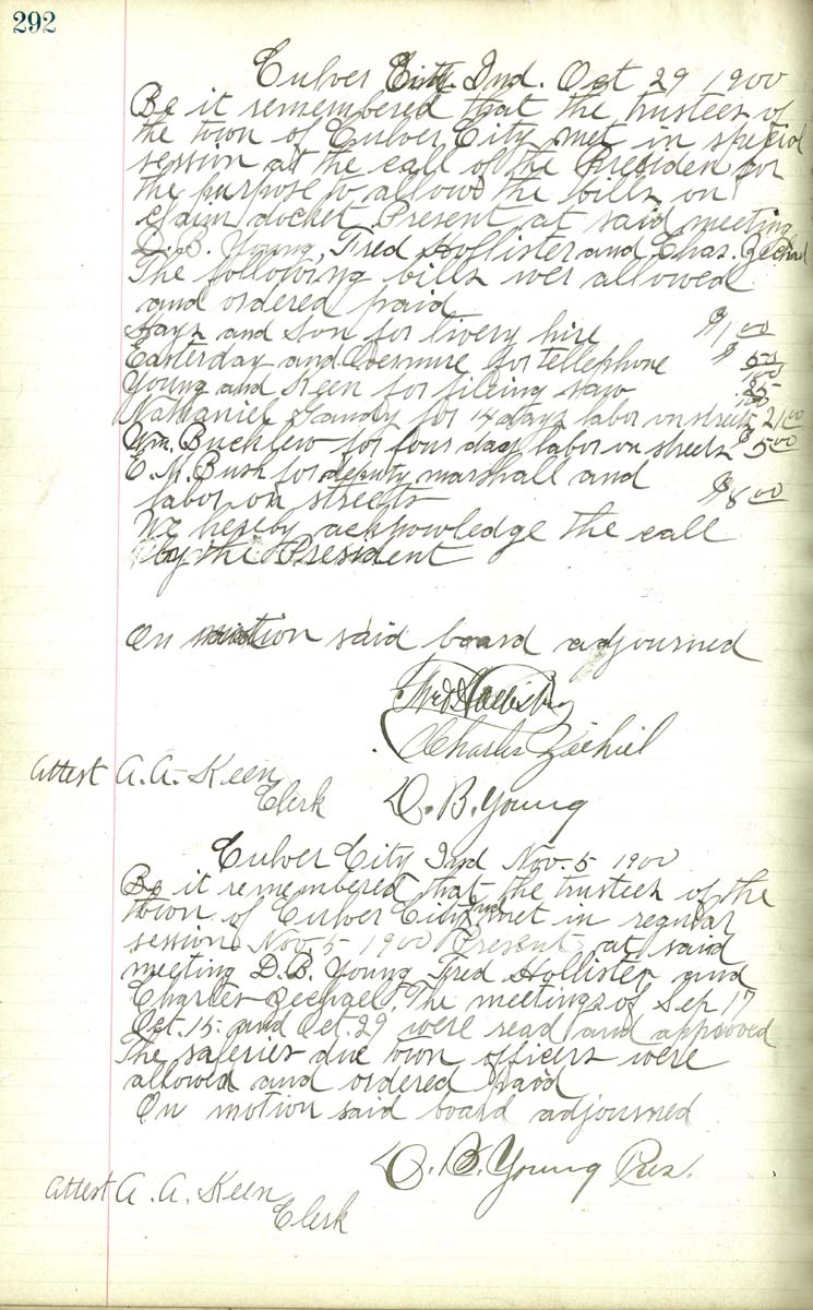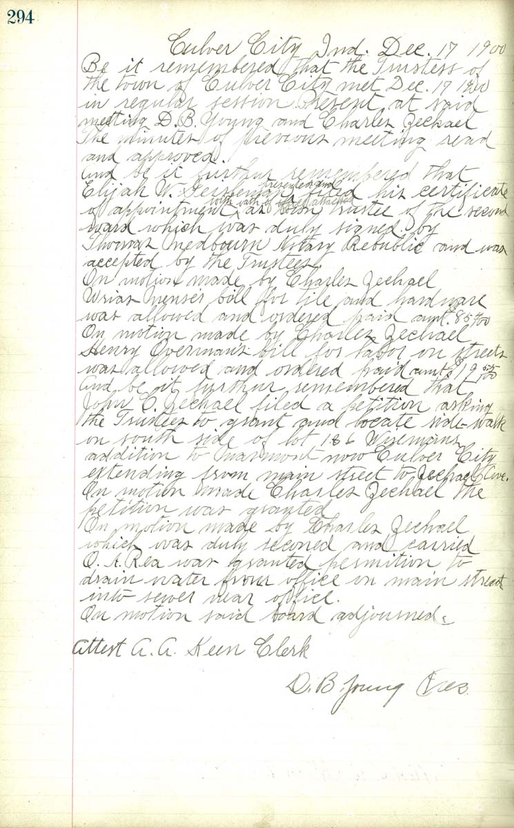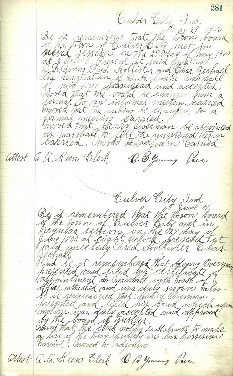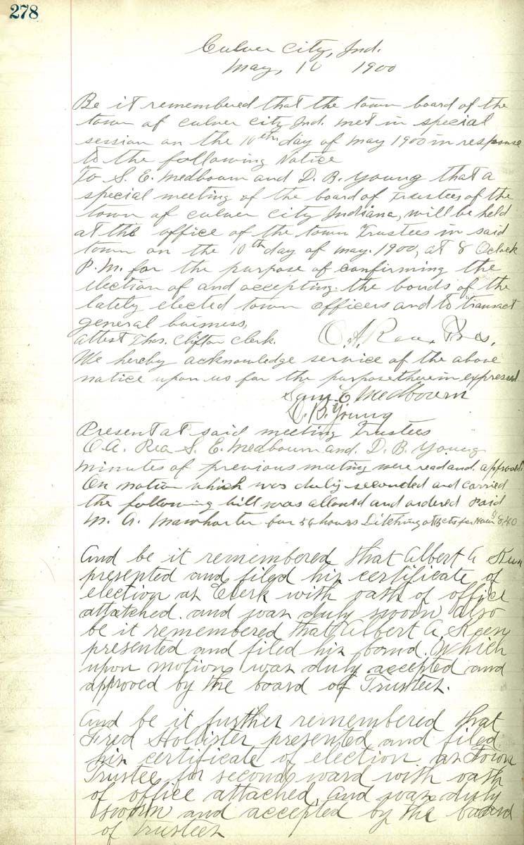 Be it rememebred that the town board of the town of Culver City Ind. met in special session on