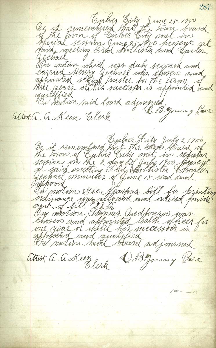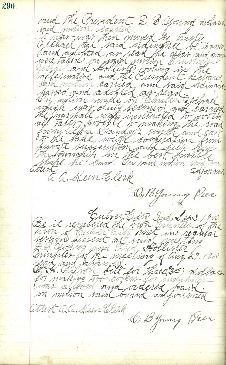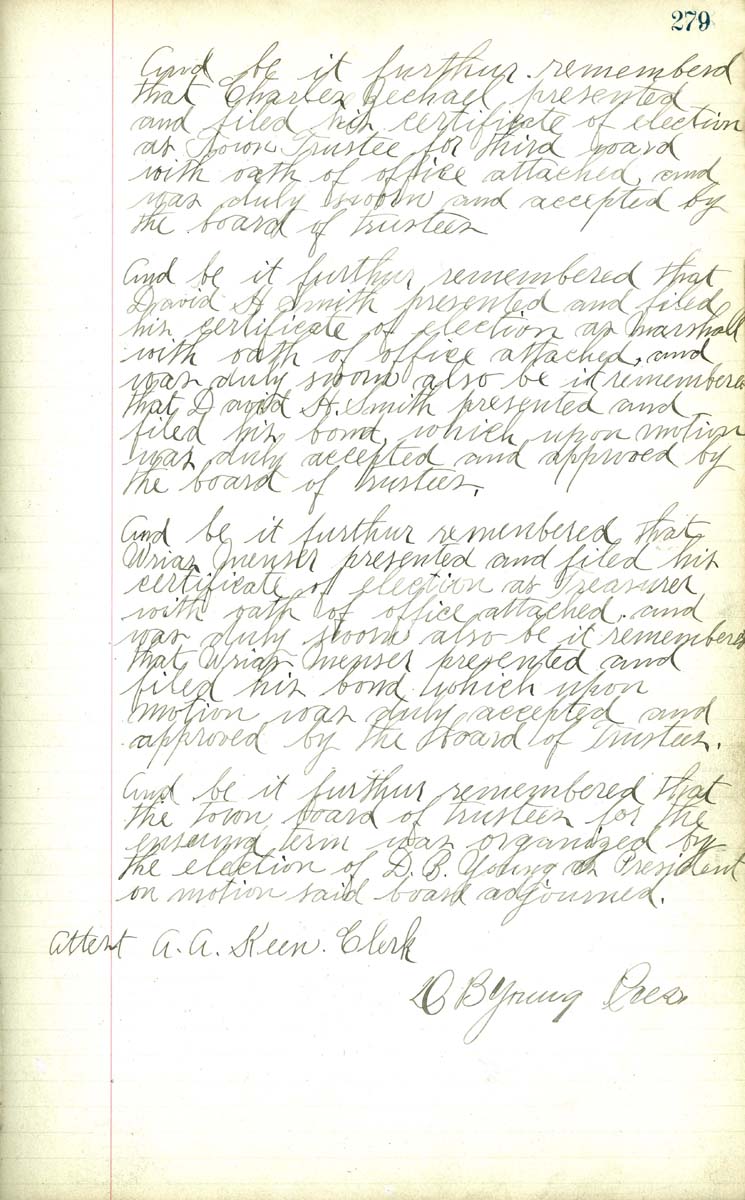 Present at said meeting Trustees O. A. Rea, S. E. Medbourn and D. B. Young.