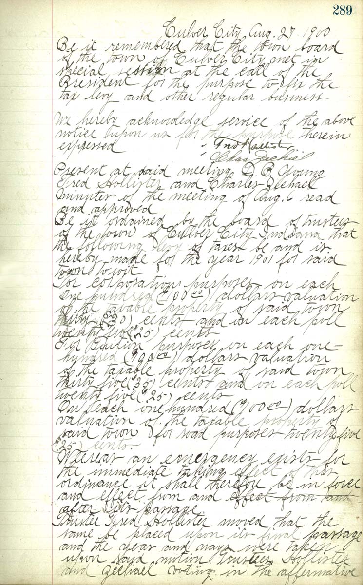 Present at said meeting trustess O. A. Rea and D. B. Young.