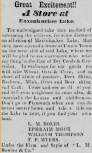 all sides of Maxinkuckee Lake, that they have opened a Store at Union Town on the