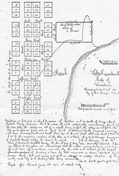 Platted June 8' 1844. by Bayless L. Dickson Proprietor. Lots number from 1 to 51 inclusive. Left