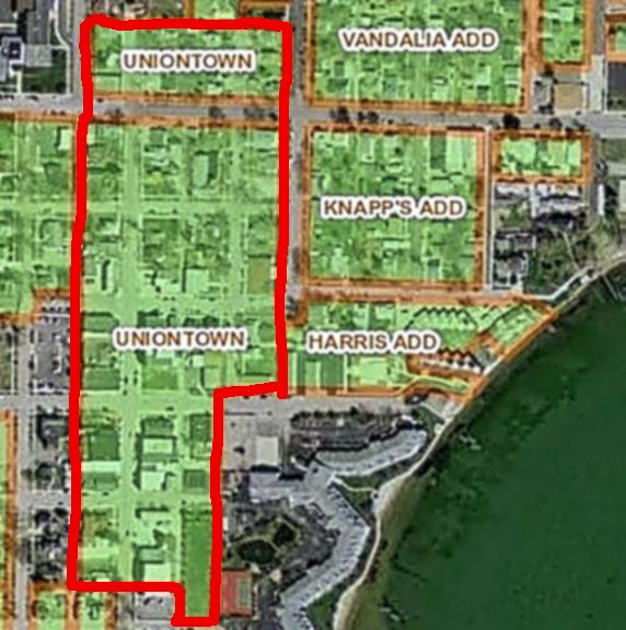 The the subdivision plats show Uniontown boundaries as represented in the image