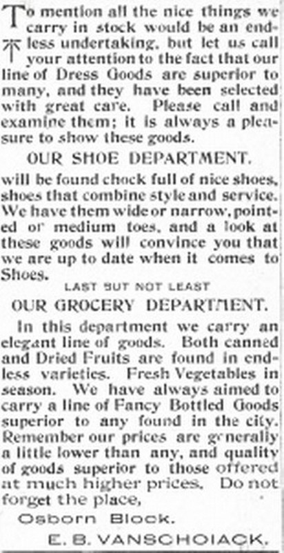E B VanSchoiak Shoe & Grocery |