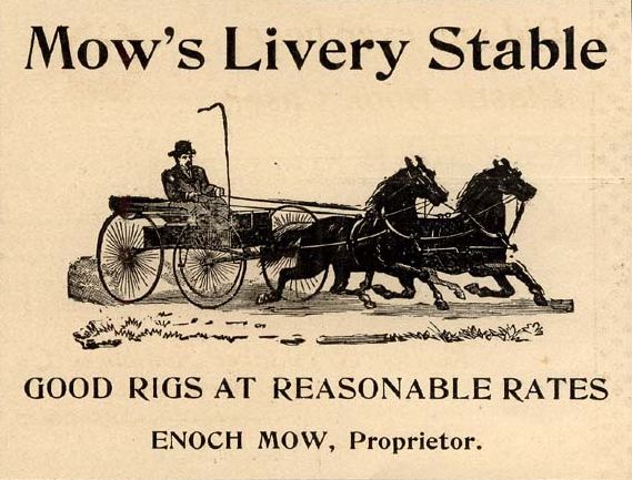 ![]() Mow's Livery & Stable, Enoch Mow, Proprietor |